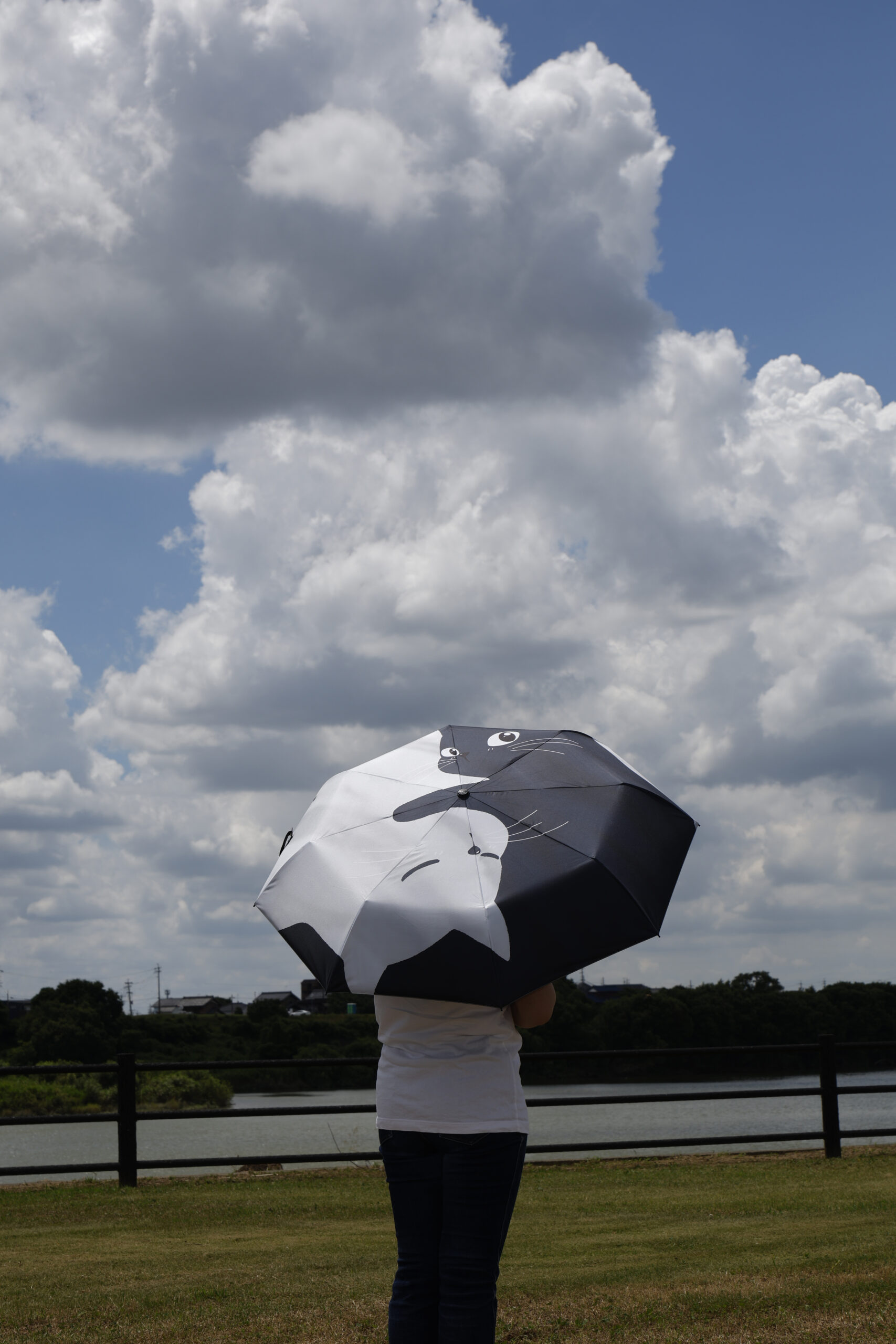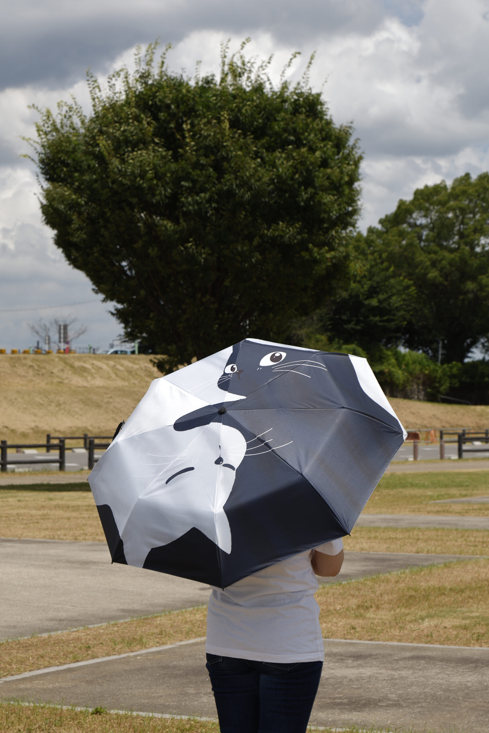 ブラック&ホワイト猫にゃんの手開き傘!