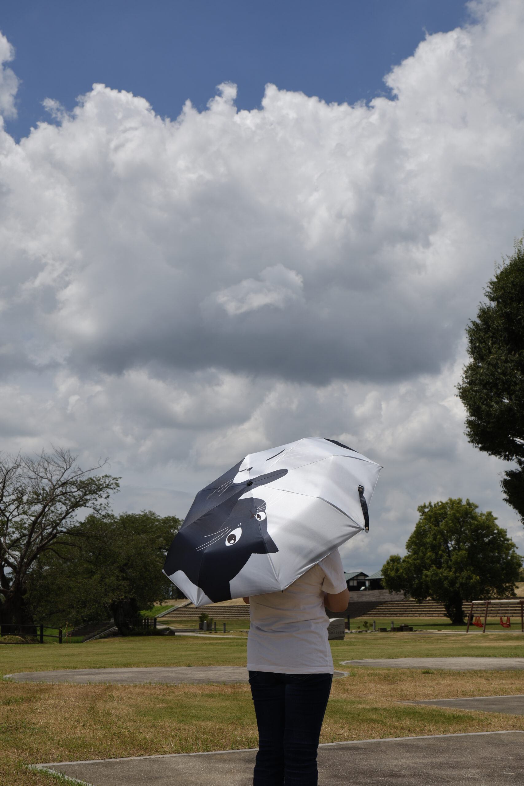 強い日差し、突然の雨でも晴雨両用の傘です。